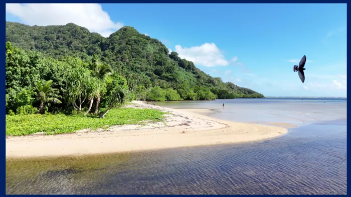 Nous partons ensuite vers Paiou, lieu du naufrage. Les images de Google Earth et celles du drone sont vraiment exceptionnelles. Nous voyons Vanikoro comme jamais encore malgré les nombreuses photos projetées lors des conférences précédentes. Nous apercevons les récifs de corail et comprenons le piège de la « fausse passe » et de « la faille ».